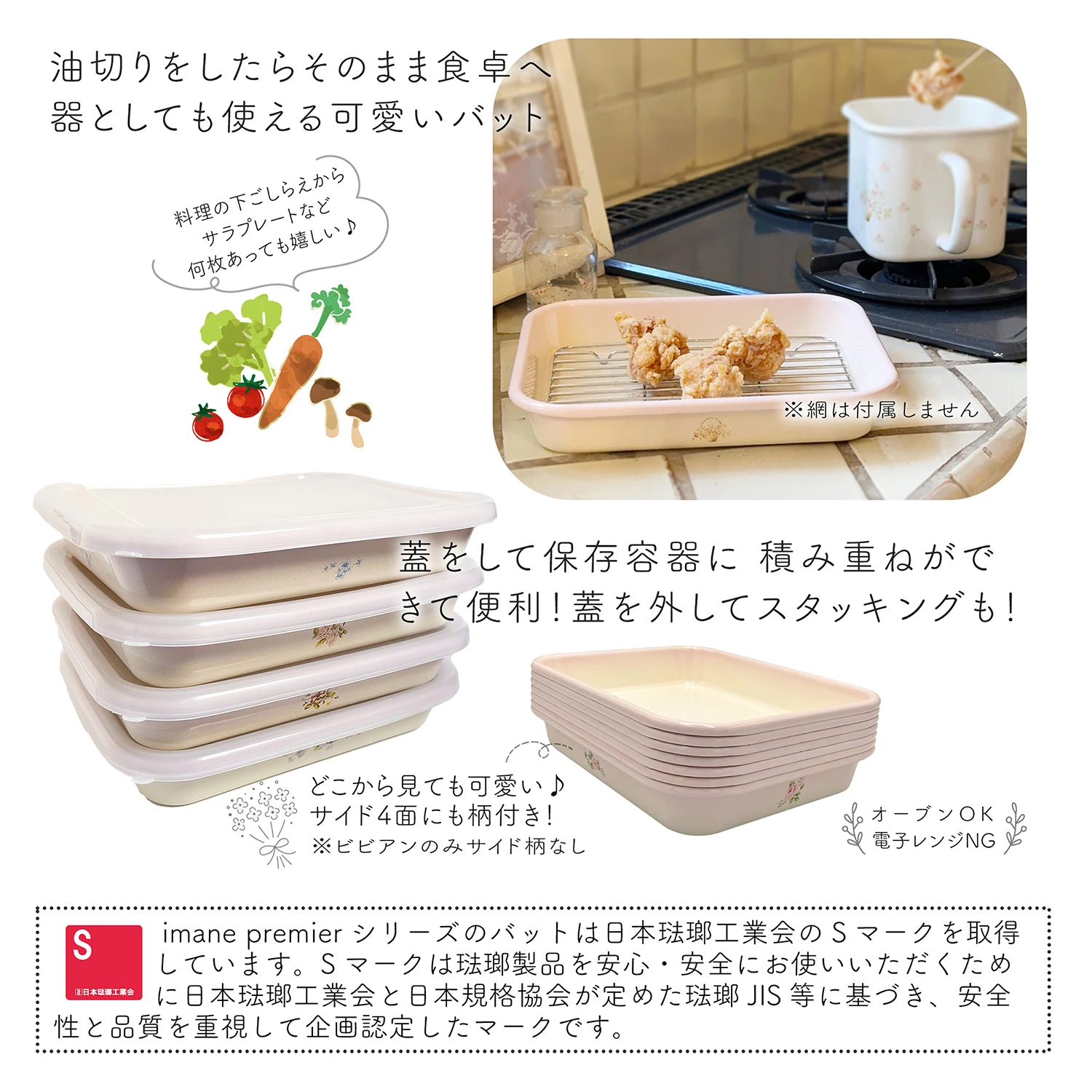 - 素材:ホーロー(琺瑯用鋼板)