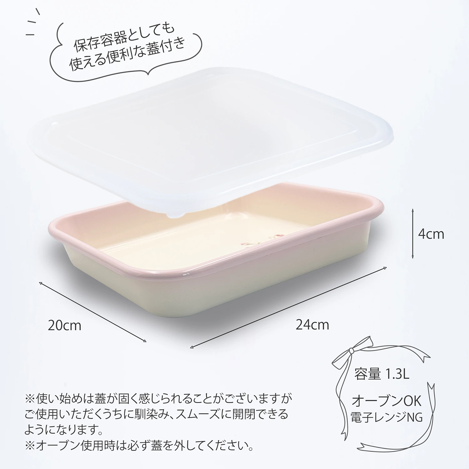- サイズ:24cm×20cm 高さ4cm 容量1.3L